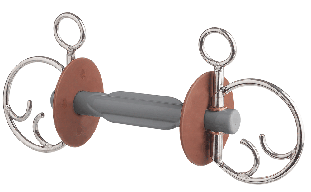The butterfly mouthpiece represents an absolute bitting innovation. The anatomically correct shape combined with the broader contact area with the tongue creates the maximum amount of space for this extremely important and sensitive muscle with the possibility of a very gentle effect. Horses show they are feeling well with increased chewing and an improved acceptance of the bit. If a stronger effect on the horse”s mouth is required, then a cheekpiece acting as a lever can achieve an alteration to the angulation of the mouthpiece in the mouth. Then, through the increased pressure on certain points, the transmission desired can be achieved. When the pressure is relaxed the butterfly bar returns immediately to its comfortable position. The Kimblewick bit is an effective combination of a lever action on the horse‘s lower jaw, poll pressure and a re-positioning of the bit inside the horse‘s mouth. Three different buckling options allow a well regulated use of the bit. The solid sidepieces of the bit give it a certain weightiness, which ensures a quieter position in the mouth .