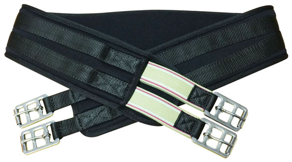 This rubberized fabric girth is designed for the ultimate comfort of your horse. It is an Anti-gall girth made from non-irritating, waffle weave poly-urethane foam that is strong, soft, easily cleaned in a bucket of soap and water, and will not absorb sweat or bacteria. Contoured and shaped with double elastic on stainless steel roller buckles on one end.