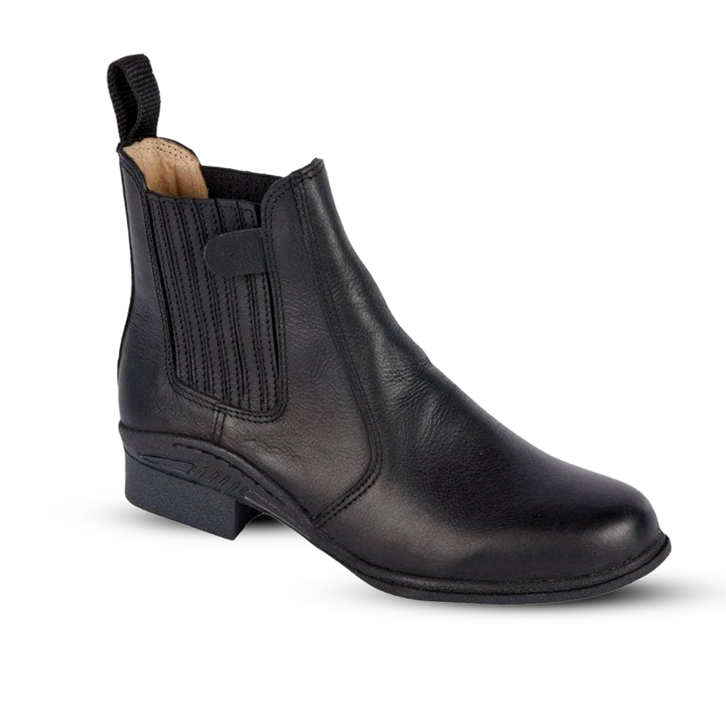 Soft full-grain leather uppers, luxurious padded comfort footbed, comfortable fit, reinforced heel and steel shank for jumping or standing in your stirrups. Good lateral support and strength.