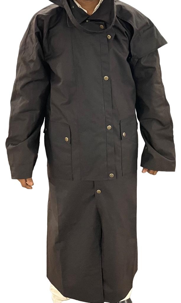 This is a waterproof oilskin coat, made from cotton and coated with a special formulated combination of oil and wax making this jacket wind and water resistant.