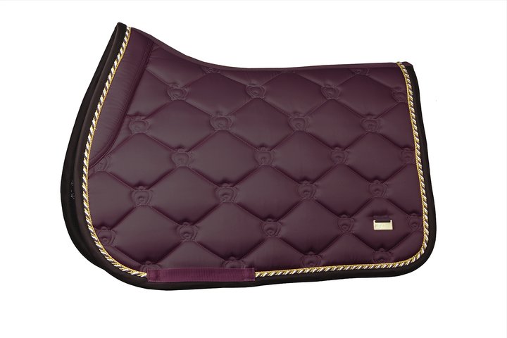 The perfect jump saddle pad to use next time you’re riding your horse! Wine is a luxurious and profound maroon color with the inspiring quote ”Commander-in-chief” embroidered to every day remind the riders to be a good leader and role model with their horsemanship. When you saddle your horse it’s important that the saddle pad doesn’t add any pressure on the withers, thanks to the anatomical shape of our saddle pads pressure is completely avoided. When you’re riding it’s important that your saddle pad is still to avoid friction and chafing. Our unique stop cushions and girth strap ensures that the saddle pad stays in a good place during the entire ride! Our saddle pads are quick-dried, with anti-fungal and antimicrobial material on the inside to efficiently wick away moisture and keep the saddle pad fresh. Our luxurious saddle pad model Monogram is made in a shiny and dirt repellent, breathable material with PS crown patterned quilt.